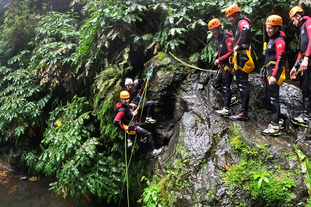 El Canyoning es una de las actividades más emocionantes que puedes experimentar en las Azores. En la Isla de São Miguel, esta aventura te lleva por arroyos, cascadas y barrancos rodeados de una vegetación exuberante.